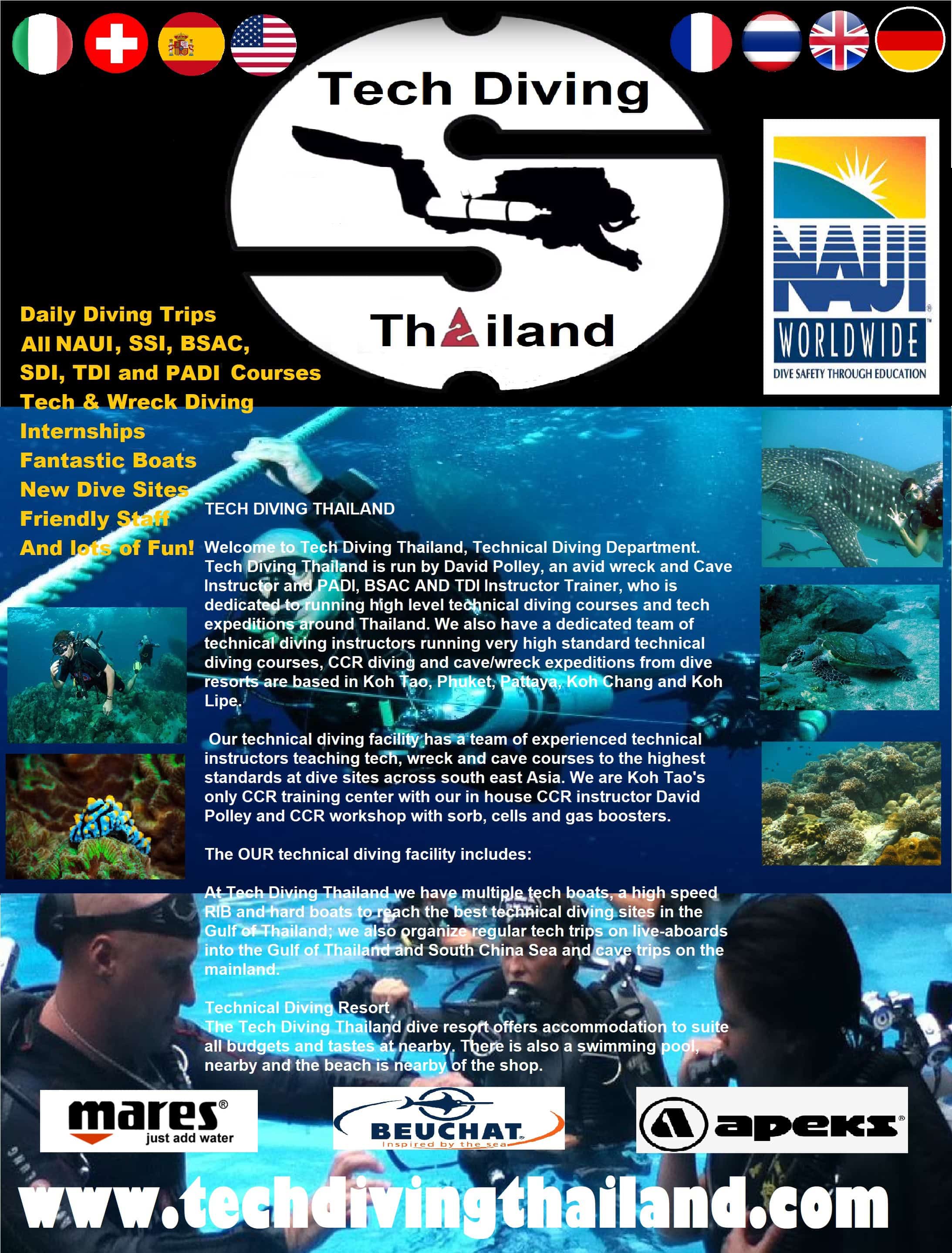 We are Koh Tao's only NAUI diving centre and in fact the only NAUI Instructors on the Island of Koh Tao. So only Tech Diving Thailand is offering all NAUI all Recreational & Technical diving courses on the island!